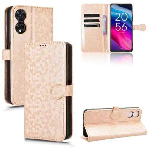 Funda de Cuero para TCL 50 5G con Textura de Punto de Panal (Dorado)