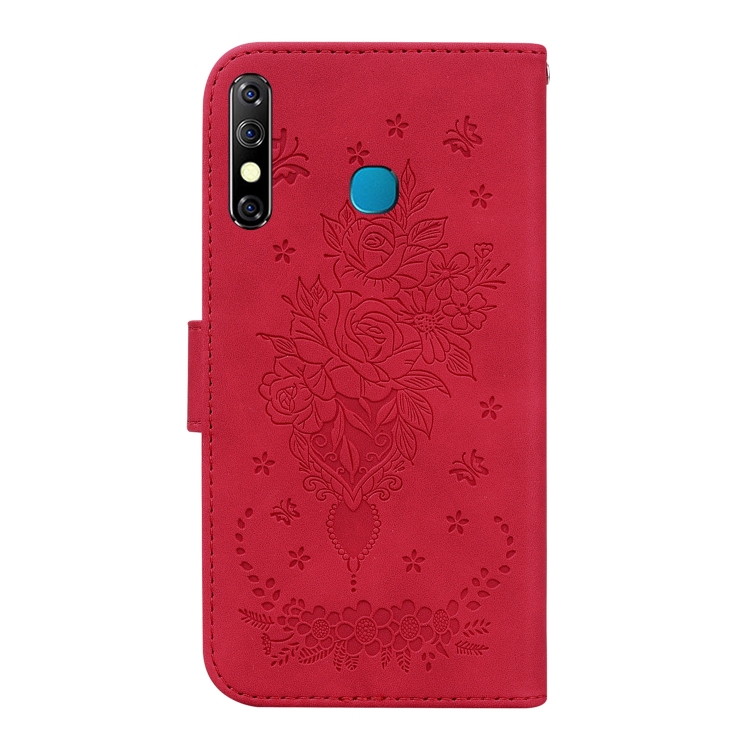 Funda de Cuero para Tecno Camon 12 y Spark 4 con Relieve de Mariposa (Rojo)