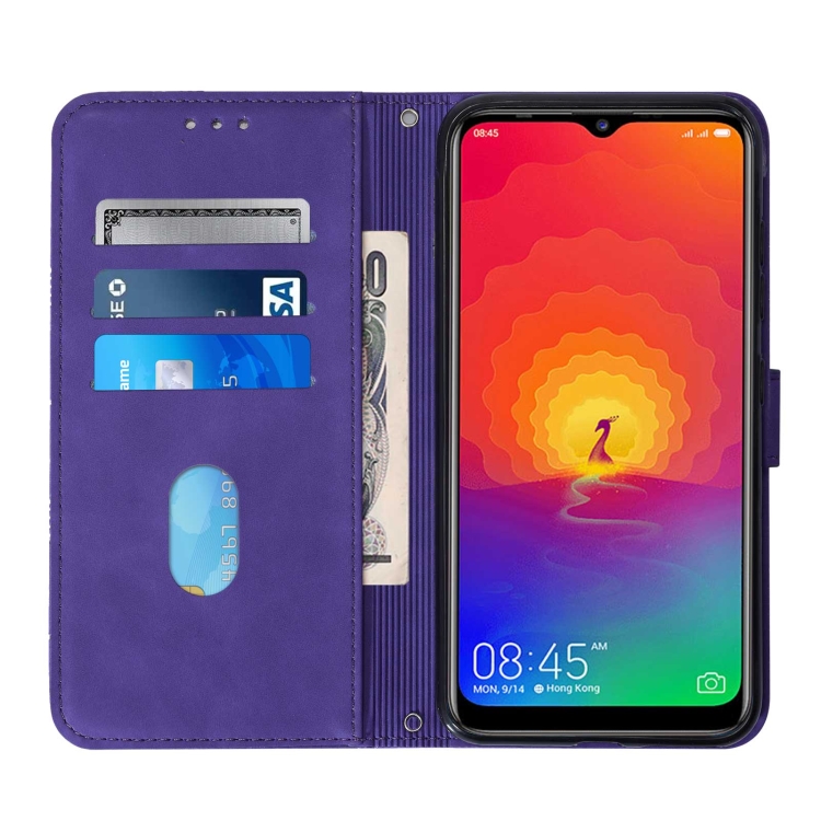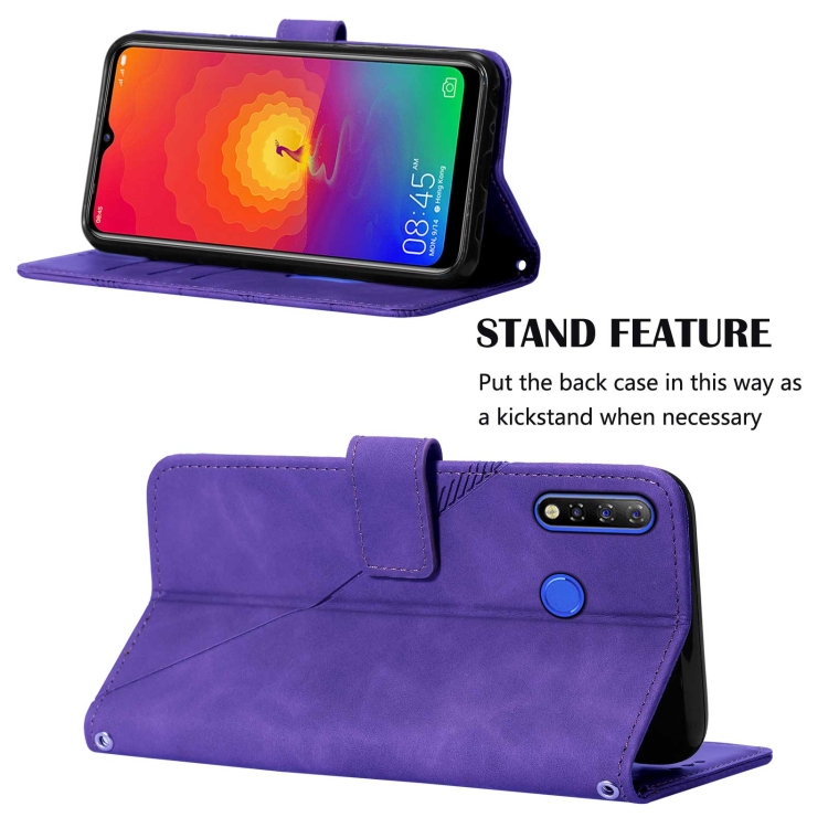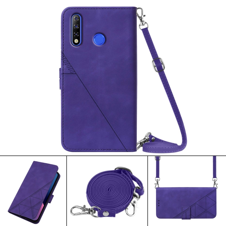 Funda de Cuero para Tecno Camon 12 y Spark 4 Crossbody 3D con Goma en Relieve (Púrpura)