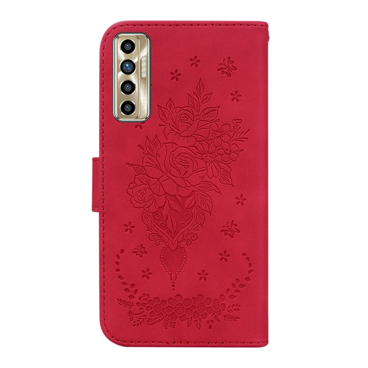 Funda para Tecno Camon 17P Butterfly Rose Foothip en Relieve de Cuero (Rojo)