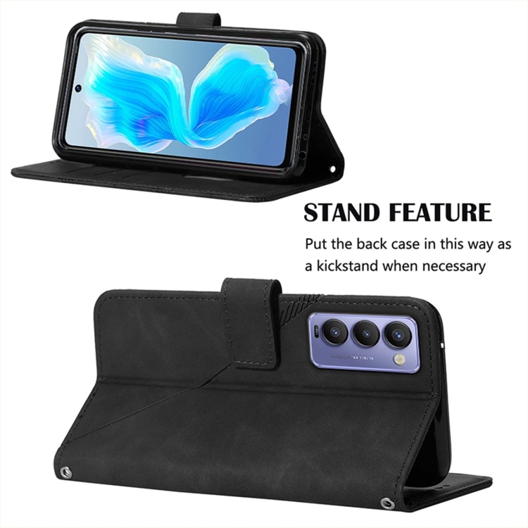 Funda para Tecno Camon 18 Crossbody 3D de Cuero con Goma en Relieve (Negro)