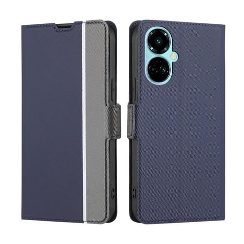 Funda de Cuero para Tecno Camon 19 / 19 Pro con Hebilla Lateral y Textura de Sarga (Azul)