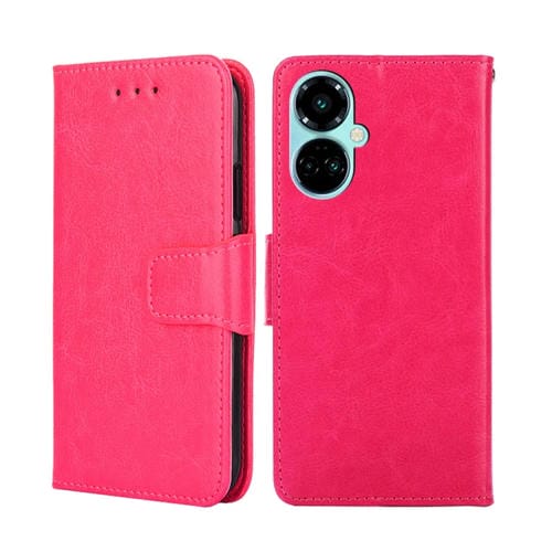 Funda de Cuero para Tecno Camon 19 / 19 Pro con Textura de Cristal (Rosa Roja)