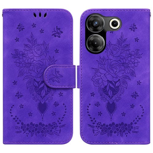Funda de Cuero para Tecno Camon 20 Pro 4G Butterfly Rose en Relieve (Púrpura)