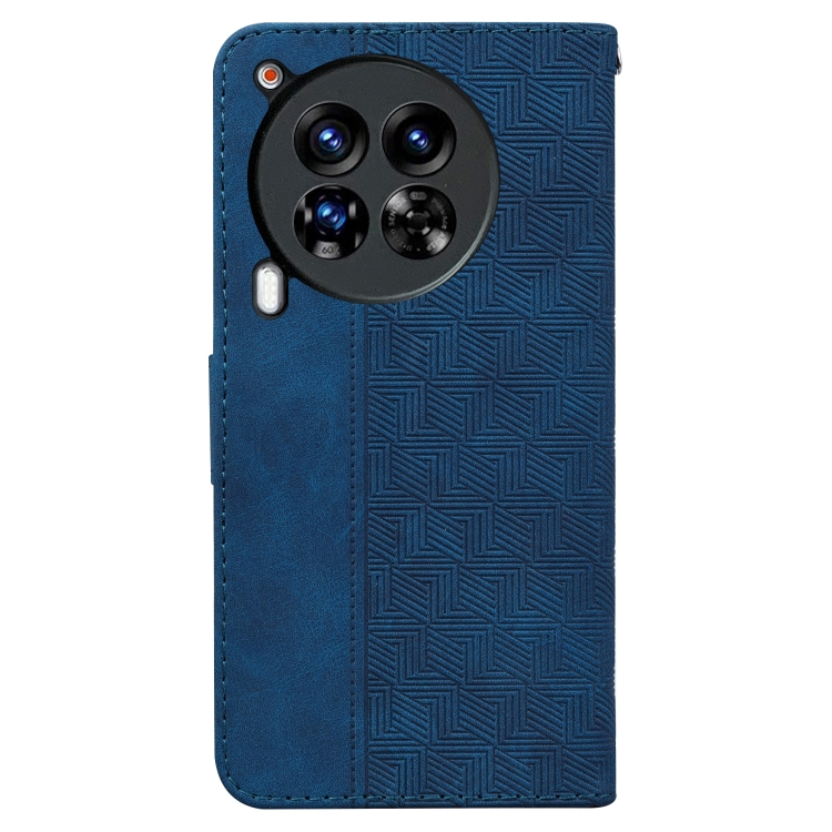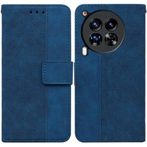 Funda de Cuero para Tecno Camon 30 Premier 5G con Relieve Geométrico (Azul)