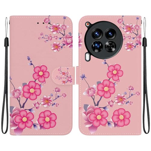 Funda de Cuero para Tecno Camon 30 Premier 5G con Dibujo y Textura de Cristal (Flores de Cerezo)