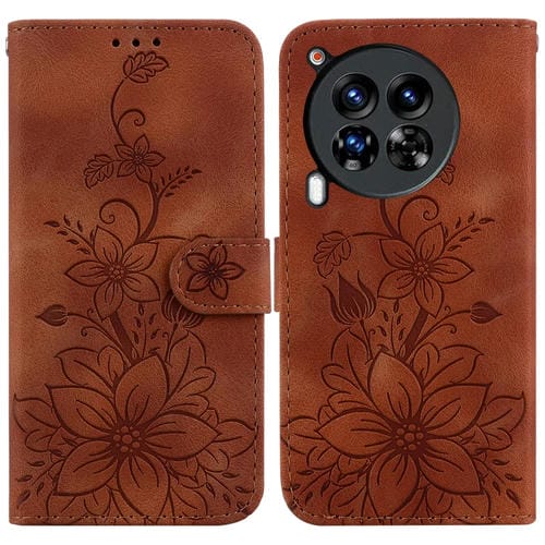 Funda de Cuero para Tecno Camon 30 Premier 5G Lily en Relieve (Marrón)