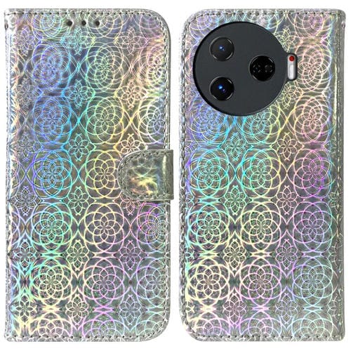 Funda de Cuero para Tecno Camon 30 Pro 5G con Hebilla Magnética Colorida (Plata)