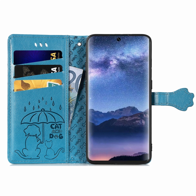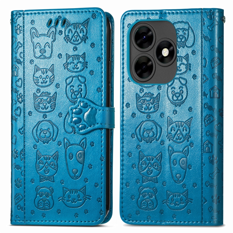 Funda de Cuero para Tecno Itel S23 con Relieve Perros y Gatos (Azul)