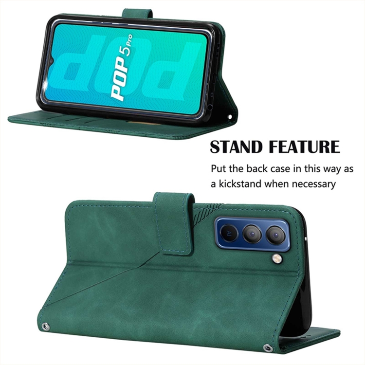 Funda Flip 3D de Cuero para Tecno Pop 5P Cross (Verde Oscuro)
