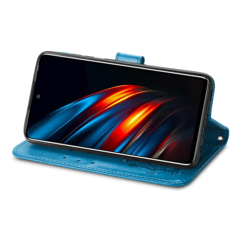 Funda para Tecno Pova 2 Cuatro Hojas con Hebilla, Protección, Ranura Tarjeta y Soporte (Azul)