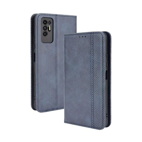 Funda de Cuero para Tecno Pova 2 con Hebilla Magnética, Soporte, Ranuras y Marco de Fotos (Azul)