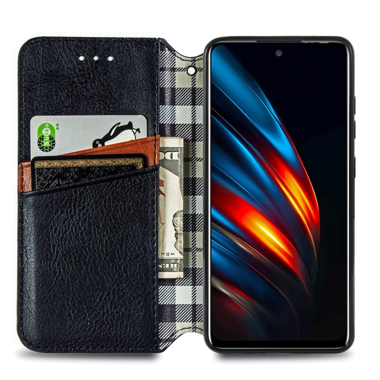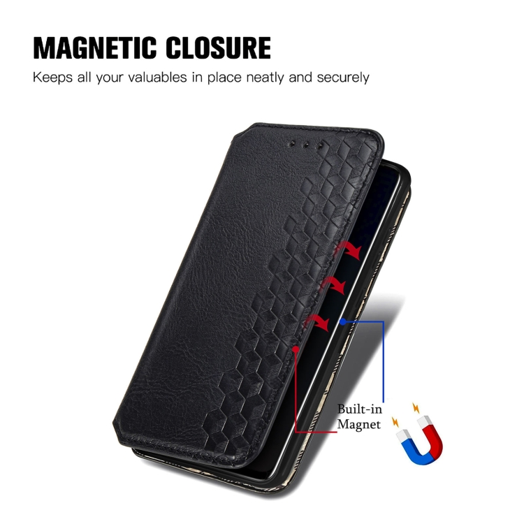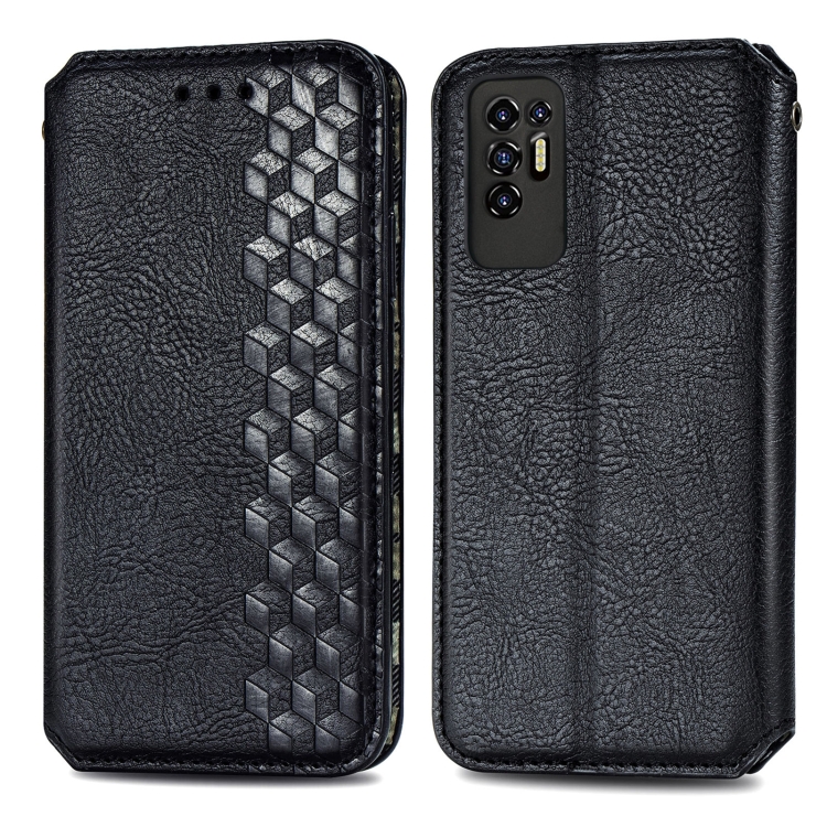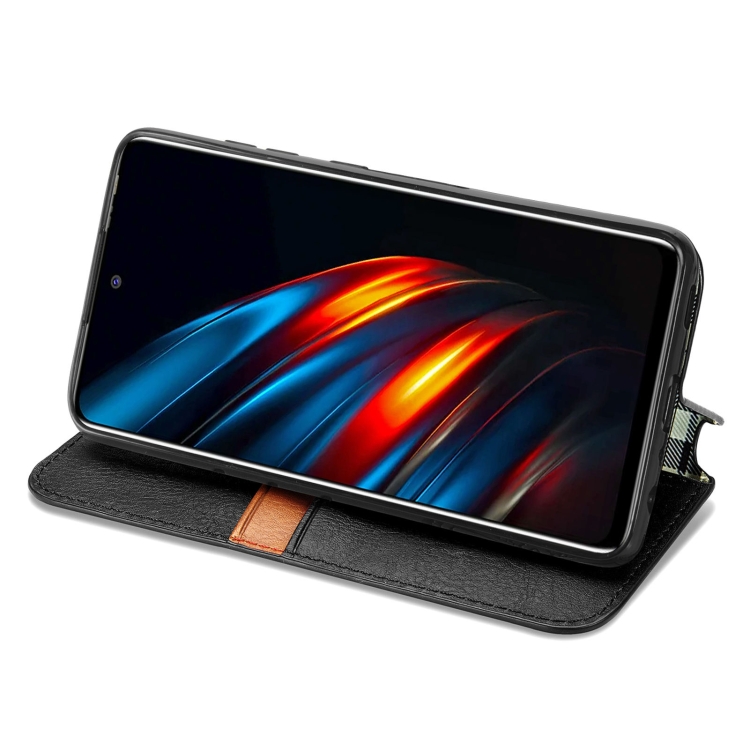 Funda de Cuero Magnética para Tecno Pova 2 con Rejilla Cúbica, Soporte, Tragamonedas y Billetera (Negro)