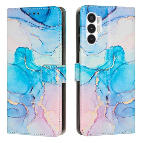 Funda de Cuero para Tecno Pova 3 con Patrón de Mármol Pintado (Rosa Verde)