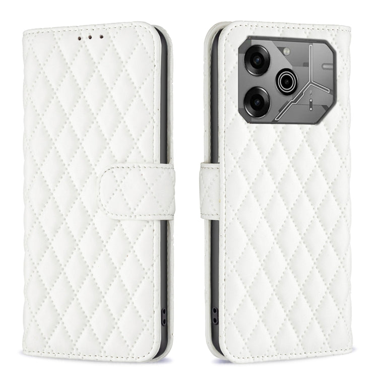 Funda de Cuero con Tapa para Tecno Pova 6/6 Pro 5G Diamond Lattice (Blanco)