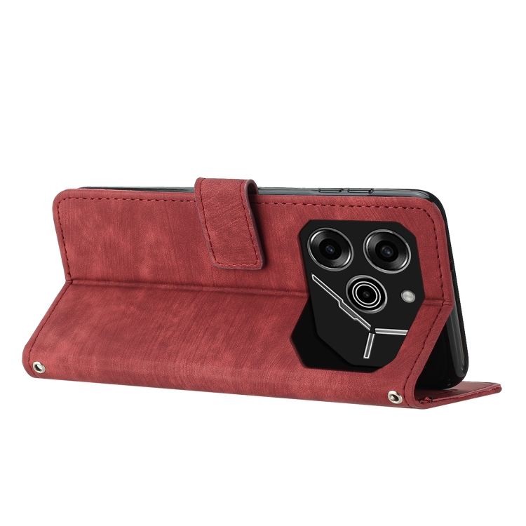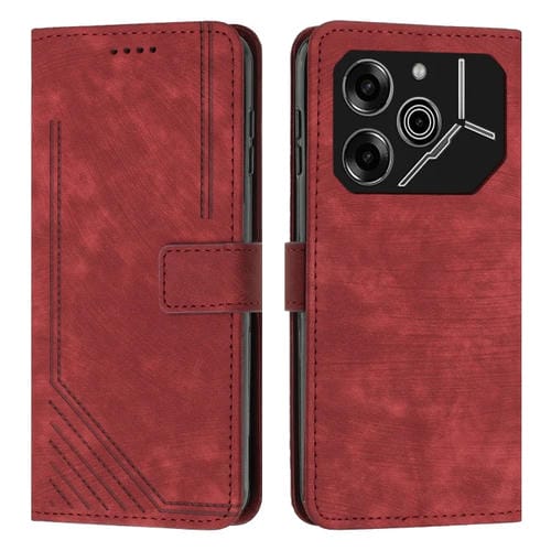 Funda de Cuero para Tecno Pova 6 Pro con Patrón de Rayas y Cordón Largo (Rojo)