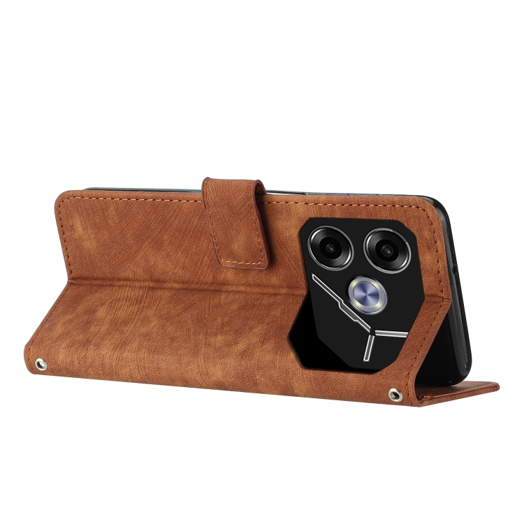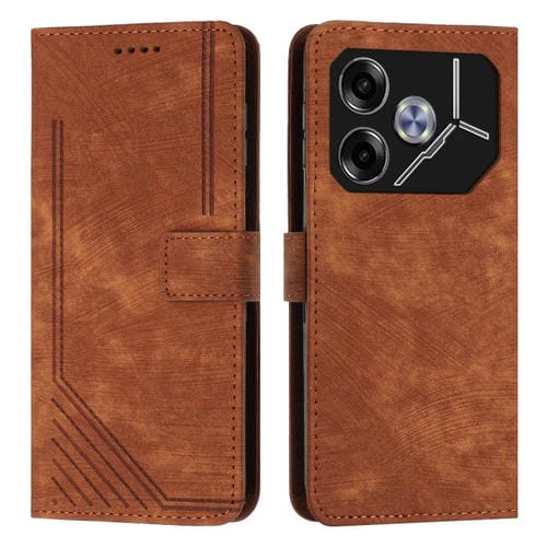Funda de Cuero para Tecno Pova 6 con Patrón de Rayas y Cordón Largo (Marrón)