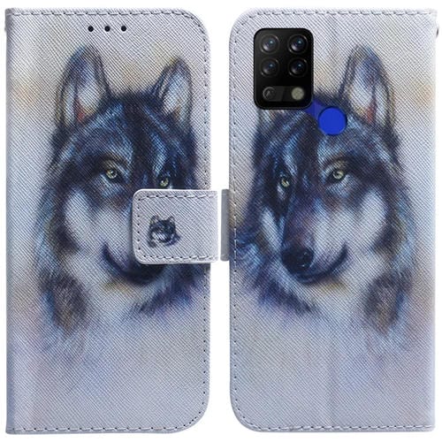 Funda de Cuero para Tecno Pova LD7 con Dibujo Lobo Blanco (Blanco)