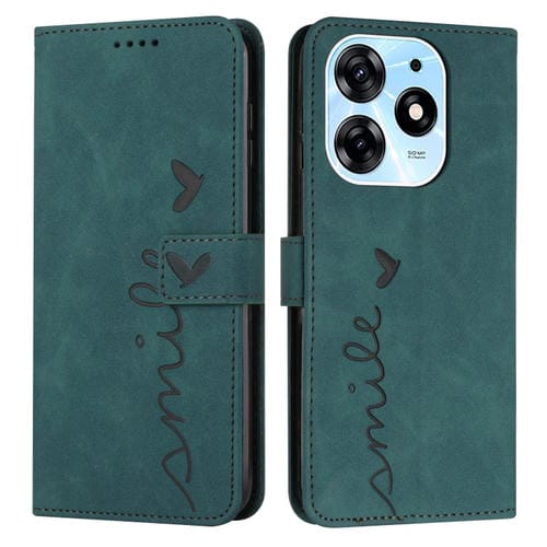 Funda de Cuero para Tecno Spark 10 Pro Skin Feel con Patrón de Corazón (Verde)