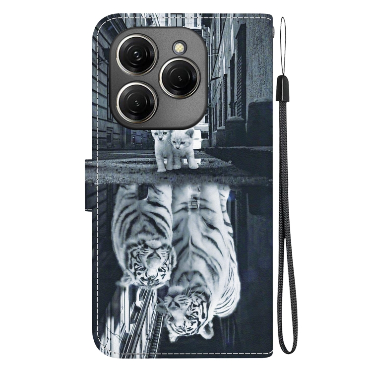 Funda de Cuero para Tecno Spark 20 Pro con Dibujo Coloreado y Textura de Cristal (Reflejo de Tigre Gato)