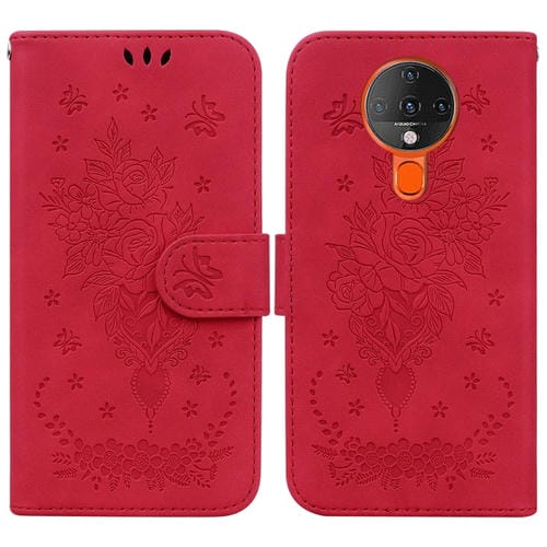 Funda para Tecno Spark 6 de Cuero con Relieve de Mariposa (Rojo)