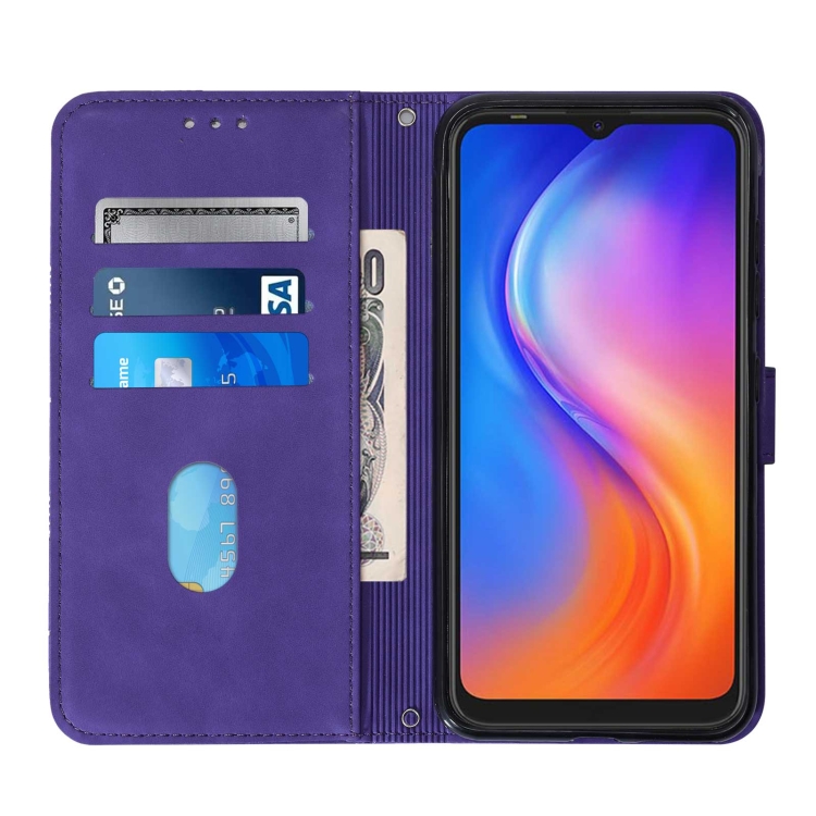 Funda de Cuero para Tecno Spark 6 Go Crossbody 3D Grabado en Relieve (Púrpura)