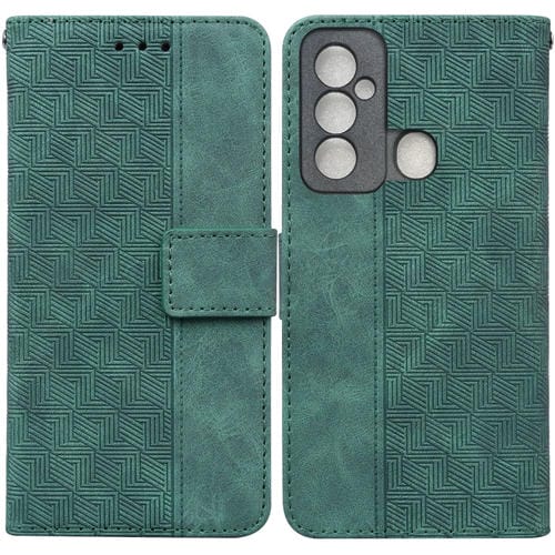 Funda de Cuero para Tecno Spark 6 Go con Relieve Geométrico (Verde)