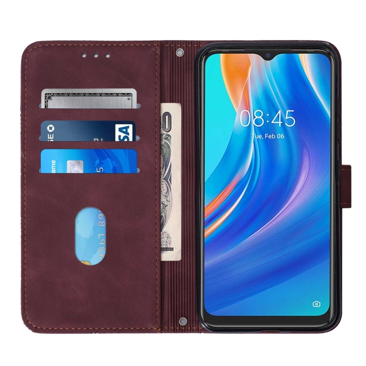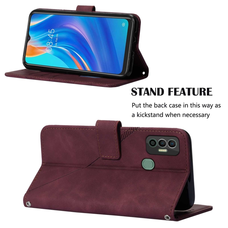 Funda de Cuero para Tecno Spark 7 Crossbody con Goma en Relieve (Rojo del Vino)