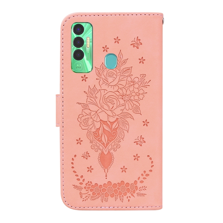 Funda para Tecno Spark 7P Butterfly Rose Foothip en Relieve de Cuero (Rosa)