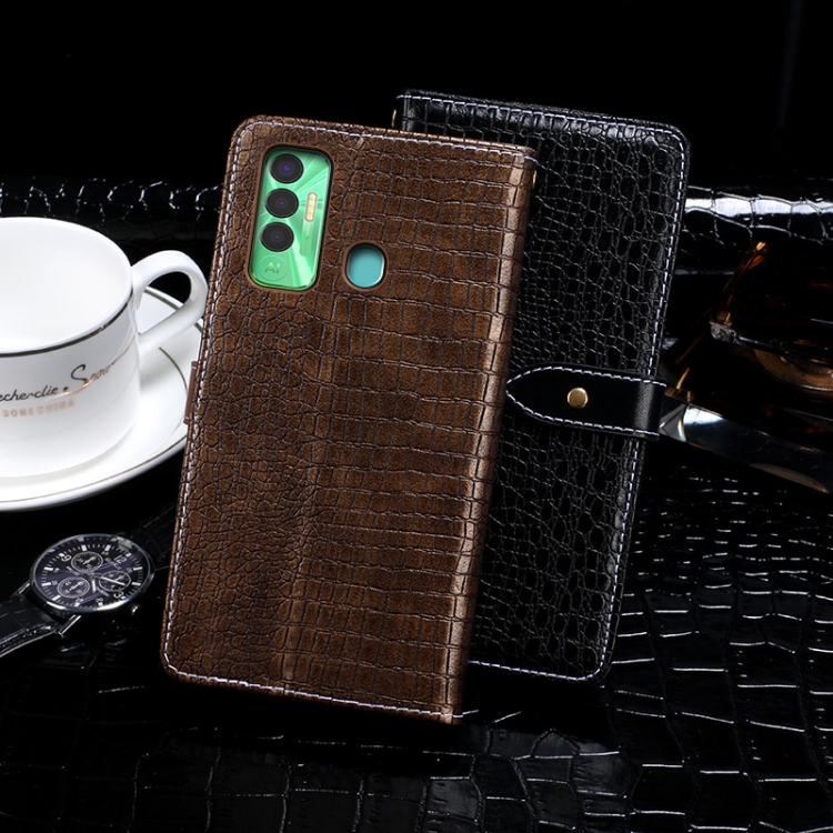 Funda de Cuero Idewei para Tecno Spark 7P con Textura Cocodrilo, Soporte, Tragamonedas y Billetera (Negro)