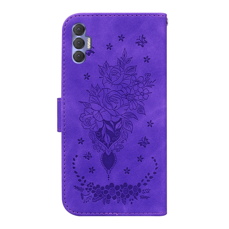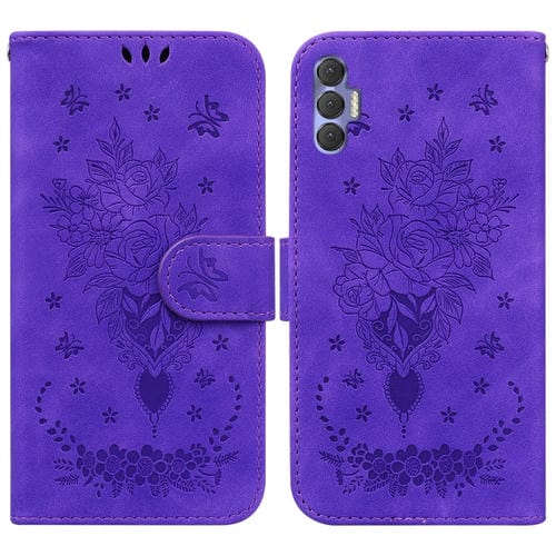 Funda para Tecno Spark 8P Butterfly Rose Foothip en Relieve de Cuero (Púrpura)