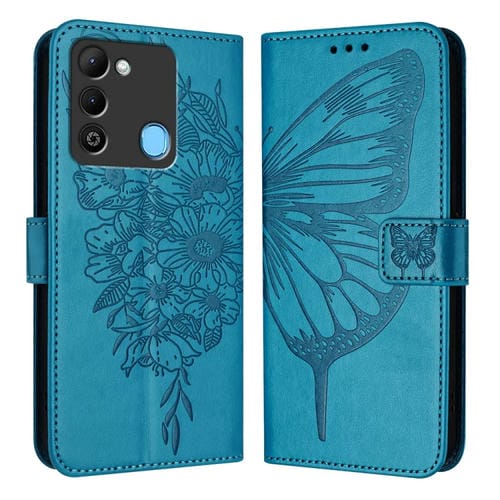 Funda de Cuero para Tecno Spark 9 con Mariposa en Relieve (Azul)