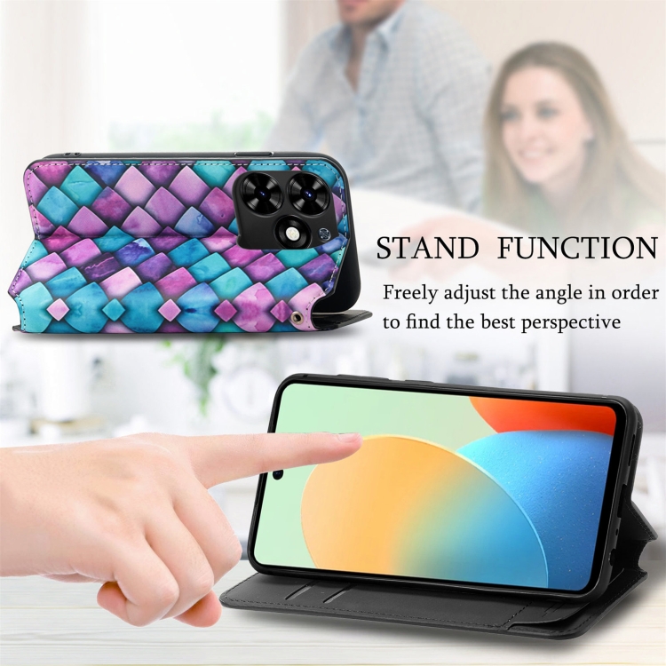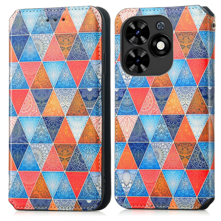 Funda de Cuero Magnética Caseneo para Tecno Spark Go 2024 (Rhombus Mandala)