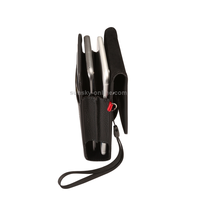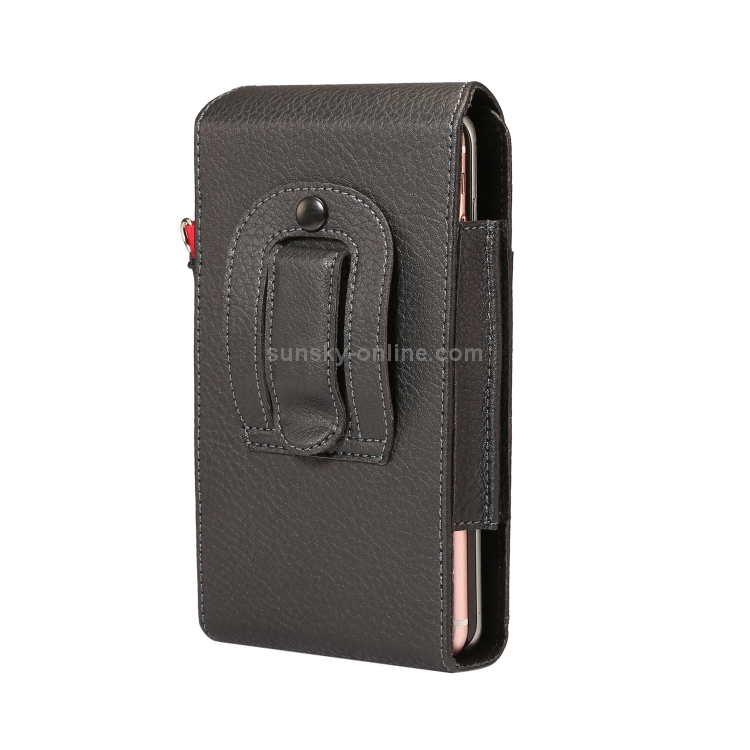 Funda de Cuero PU Universal para Teléfonos de 6,7 Pulgadas o Menos con Textura Litchi, Riñonera, Ranura para Tarjeta, Clip para Cinturón y Cordón (Negro)