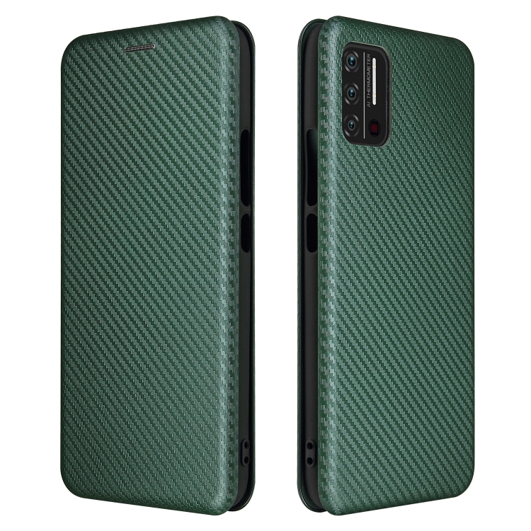 Funda para Umidigi A7S Cuero con Tapa Magnética Horizontal Textura Fibra de Carbono TPU + PC + PU con Ranura para Tarjeta (Verde)