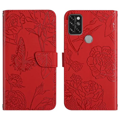 Funda de Cuero para Umidigi A9 Pro con Relieve de Peonía y Mariposa (Rojo)