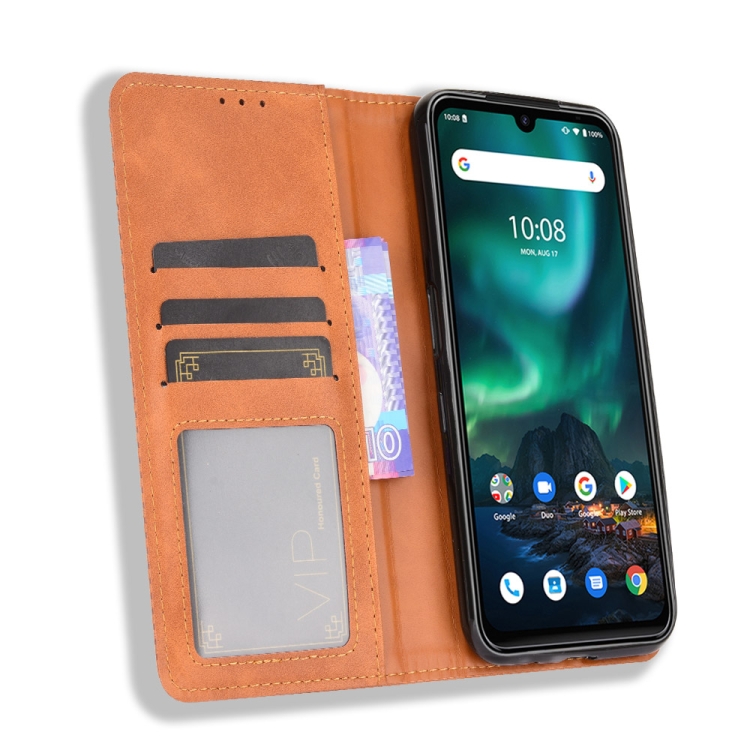 Funda de Cuero para Umidigi Bison con Hebilla Magnética, Soporte, Ranuras y Marco de Fotos (Marrón)