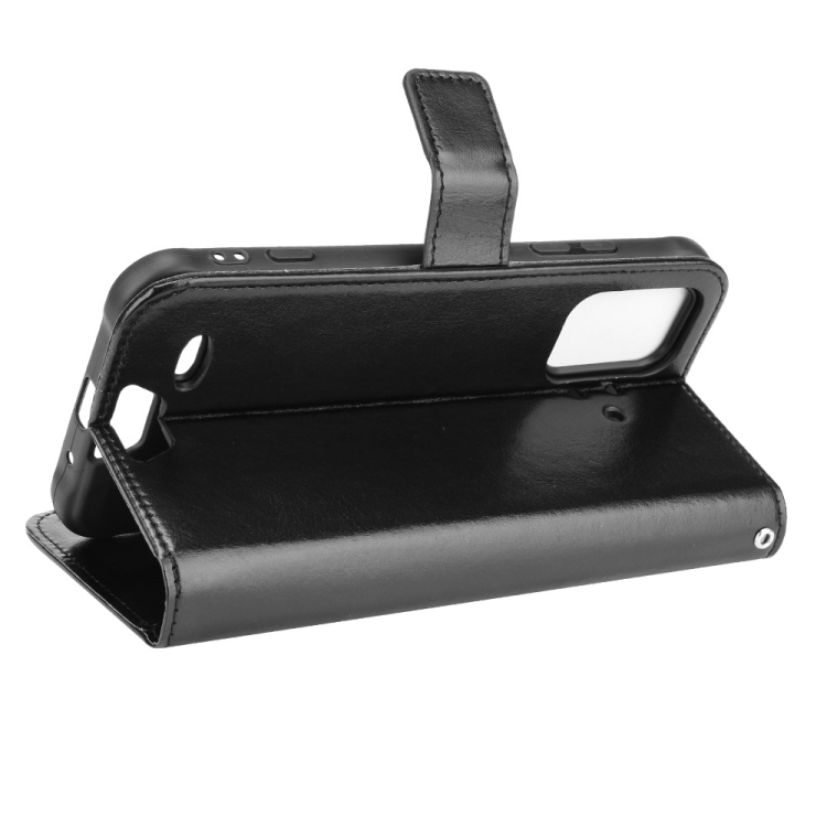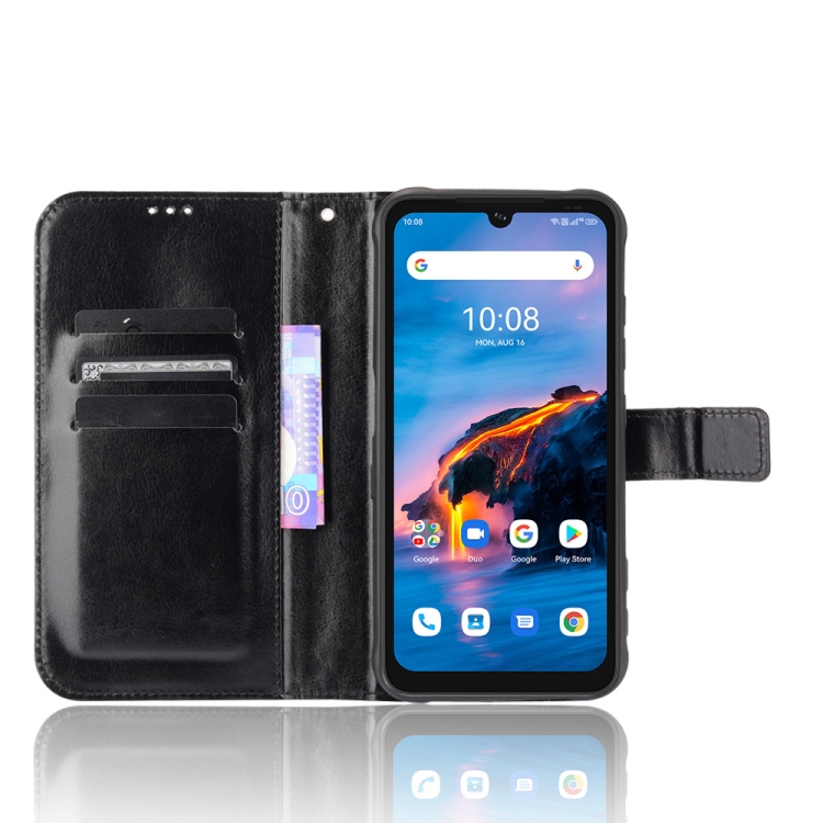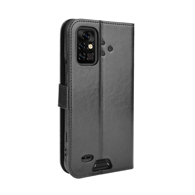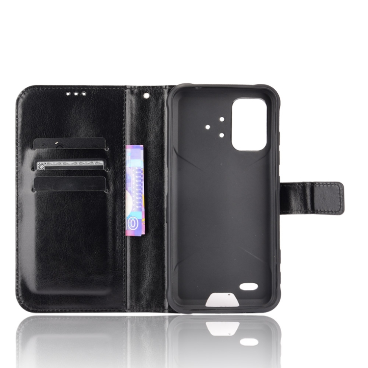 Funda de Cuero para Umidigi Bison Pro Crazy Horse Texture con Soporte, Ranuras para Tarjetas y Cordón (Negro)