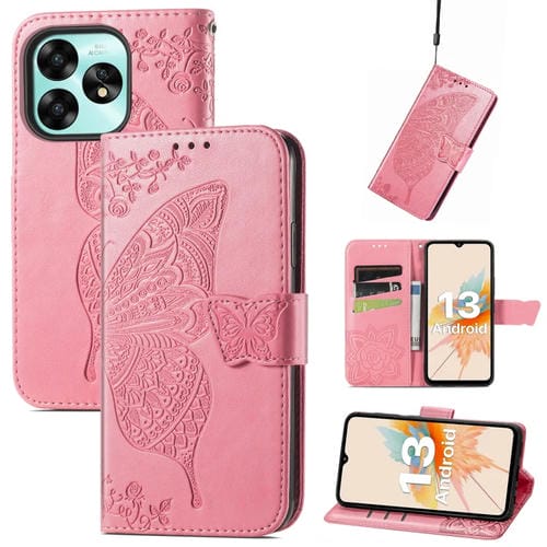 Funda para Teléfono Umidigi G5 G5A Cuero Relieve Flor Amor y Mariposa (Rosa)