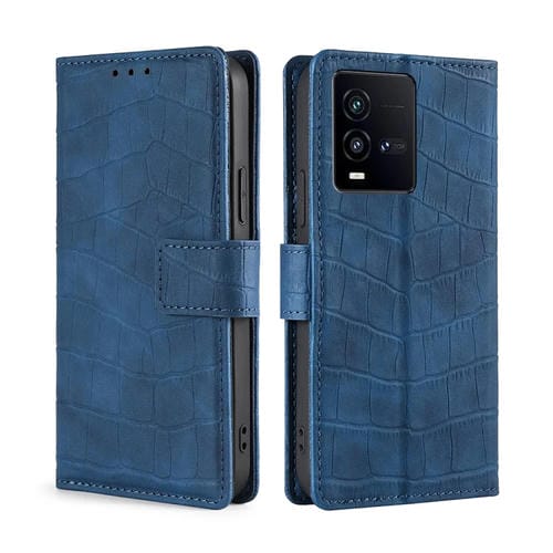 Para Vivo Iqoo 10 Skin Feel Cocodrilo Cierre Magnético Funda de Cuero para Teléfono (Azul)
