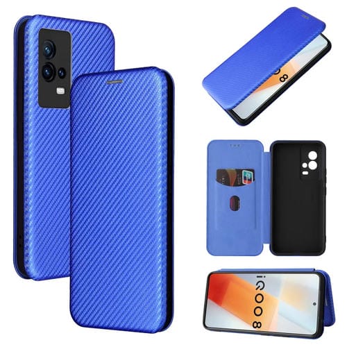 Para Vivo Iqoo 8 Textura de Fibra de Carbono Flip Horizontal TPU + PC + Funda de Cuero Pu con Ranura para Tarjeta (Azul)