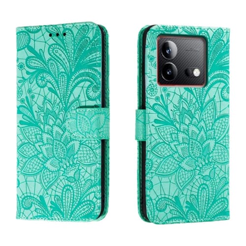 Para Vivo Iqoo Neo8 Funda para Teléfono de Cuero con Tapa y Estampado de Flores de Encaje (Verde)