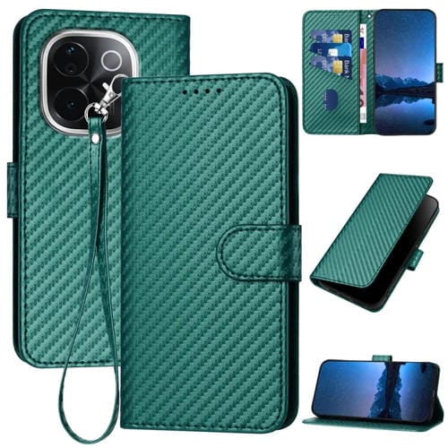 Funda de Cuero con Hebilla de Fibra de Carbono y Cordón para Vivo Iqoo Z9S Pro / T3 Pro 5G India Yx0070 (Verde Oscuro)