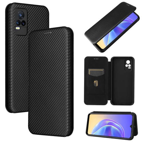 Para Vivo V21E Fibra de Carbono Textura Magnético Horizontal Flip TPU + PC + Funda de Cuero Pu con Ranura para Tarjeta (Negro)