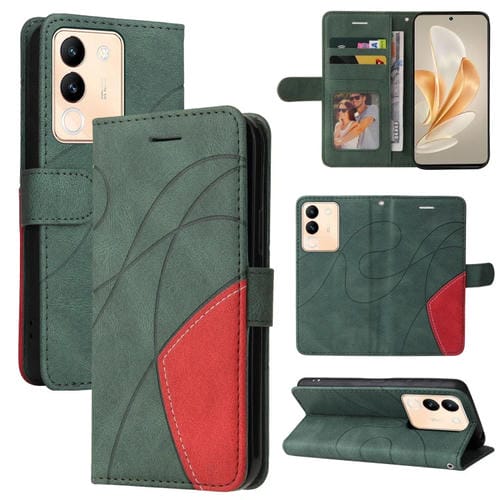 Para Vivo V29E Global / Y200 5G Global Funda de Cuero con Tapa y Empalme de Dos Colores (Verde)