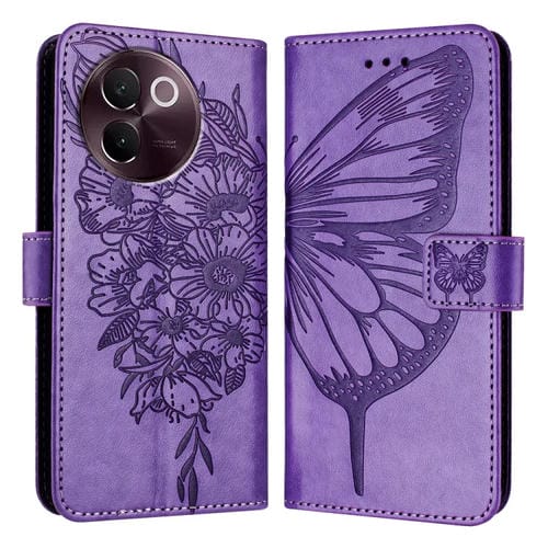 Para Vivo V30E 5G Funda para Teléfono de Cuero con Mariposa En Relieve Global (Púrpura Claro)