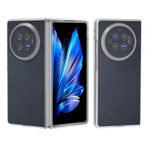Para Vivo X Fold3 Abeel Funda para Teléfono con Borde Transparente Esmerilado Elegante de Cuero Genuino (Azul)