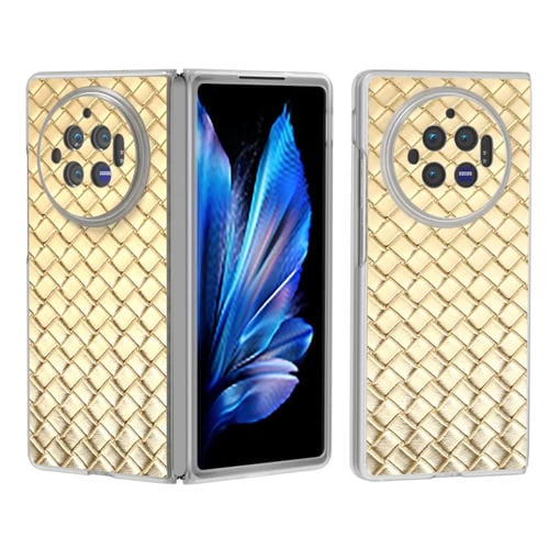 Para Vivo X Fold3 Funda para Teléfono de Pu con Marco Translúcido Esmerilado con Textura Tejida (Dorado)