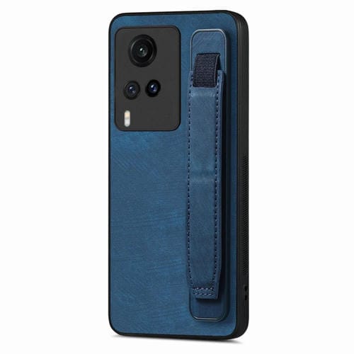 Para Vivo X60 Retro Muñequera Funda Trasera de Cuero para Teléfono (Azul)