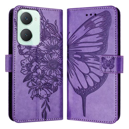 Para Vivo Y03 4G Funda para Teléfono de Cuero con Mariposa En Relieve Global (Púrpura Claro)
